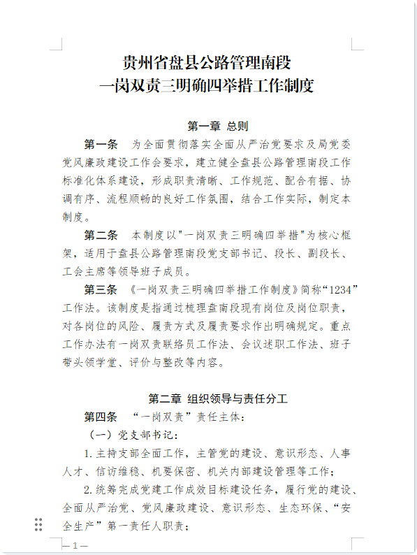 在政治建设方面,依托党建品牌创建和廉洁文化创建,制定了《贵州省盘县公路管理南段“开路先锋·星耀夹马石”党建品牌创建工作方案》和《贵州省盘县公路管理南段“以廉润路·百里清风”廉洁文化品牌创建方案》,分别探索出“一学两讲三提升”工作法和“廉洁文化品牌打造三部曲”。在作风建设方面,制定了《贵州省盘县公路管理南段“一岗双责”三明确四举措工作制度》,简称“一岗双责”“1234”工作法。该制度通过梳理盘南段现有岗位及岗位职责,对各岗位的风险、履责方式及履责要求作出明确规定。在人事人才建设方面,创新推行AB岗工作制度,明确岗位职责互补机制,确保工作无缝衔接。为干部职工量身定制“人才成长地图计划”,精准搭建人才培养平台,激活人才储备动能。启动“青蓝工程”项目,以“老带新、师带徒”的方式助力新进员工快速成长,为新成员的快速成长和业务知识的传递奠定了坚实基础。选派青年干部、优秀职工到上级单位、扶贫一线进行学习及锻炼,推动干部职工开阔视野、增长才干。